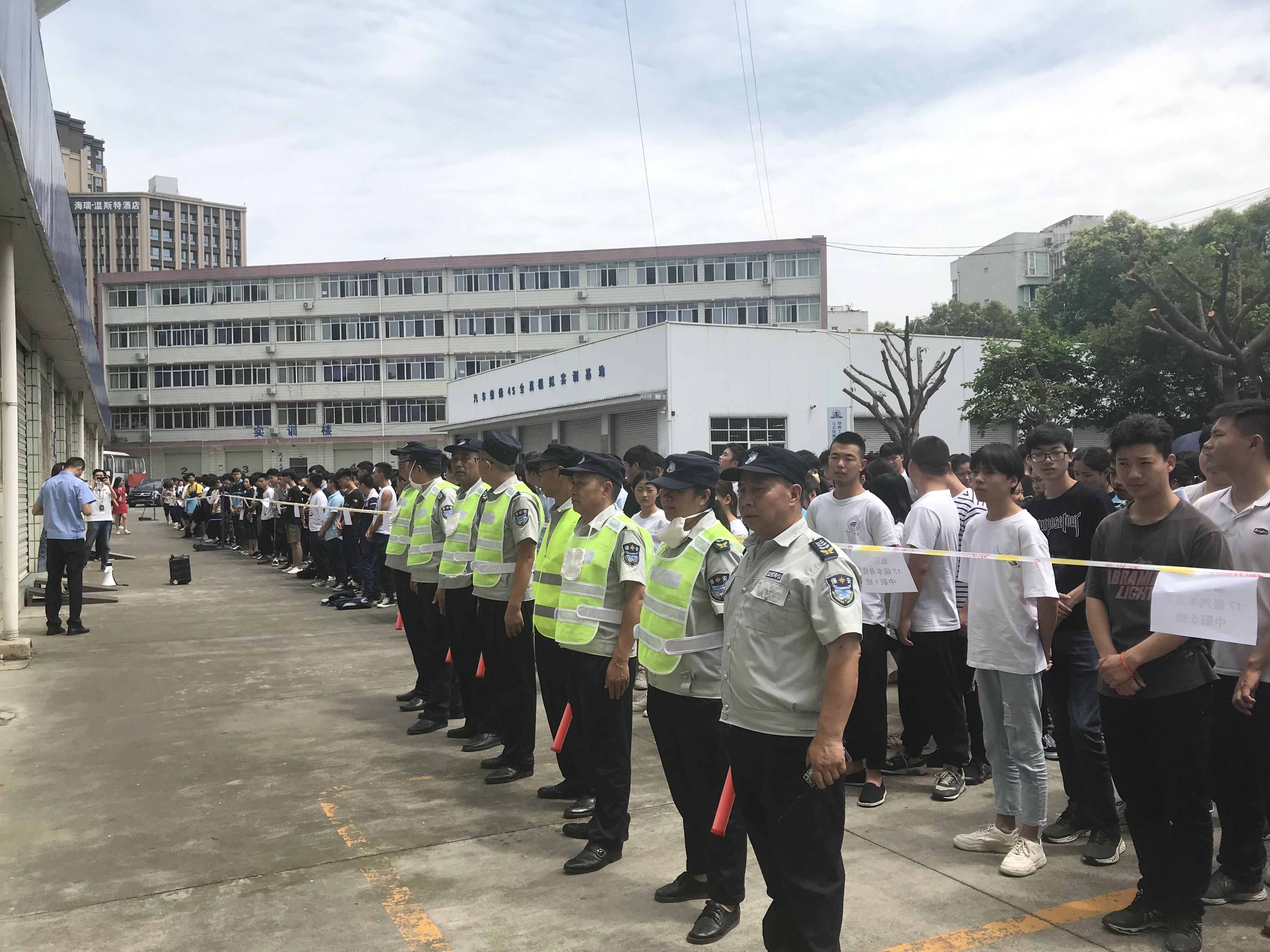 随着应急广播发出的疏散指令,同学们在老师们的带领下,手捂口鼻,按照疏散引导员的指挥路径,分别从教学楼、实训楼迅速、安全、有序地撤离到安全的空地区域。整个疏散过程耗时3分10秒,近2000名师生全部疏散完毕。到达安全区域,随即清点人数。整个过程师生临危不乱、紧张有序,收到了预期的效果。