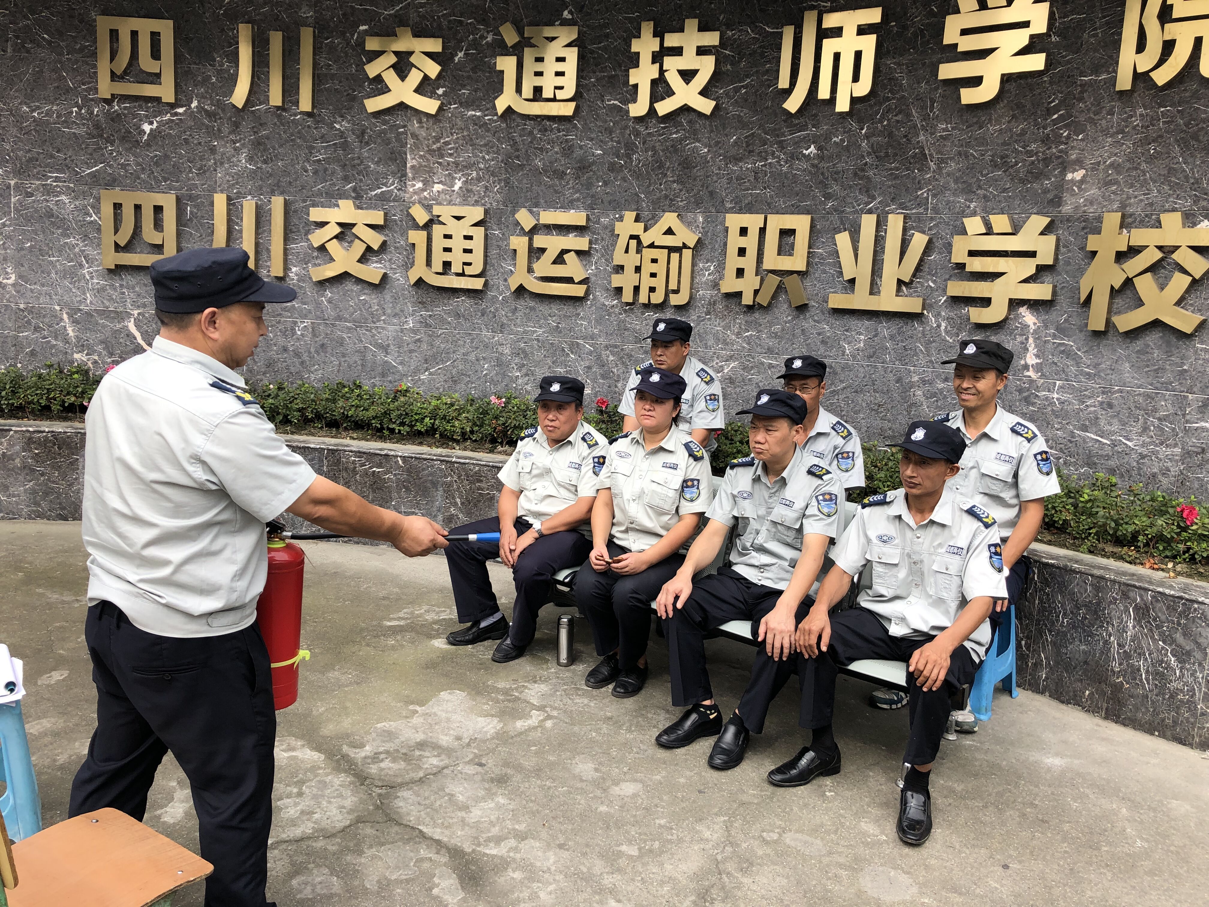 最后,保安队长带领全体保安人员进行了消防、防暴、礼仪、队列等训练,大家纷纷表示有信心做好学校安保工作,确保校园平安。