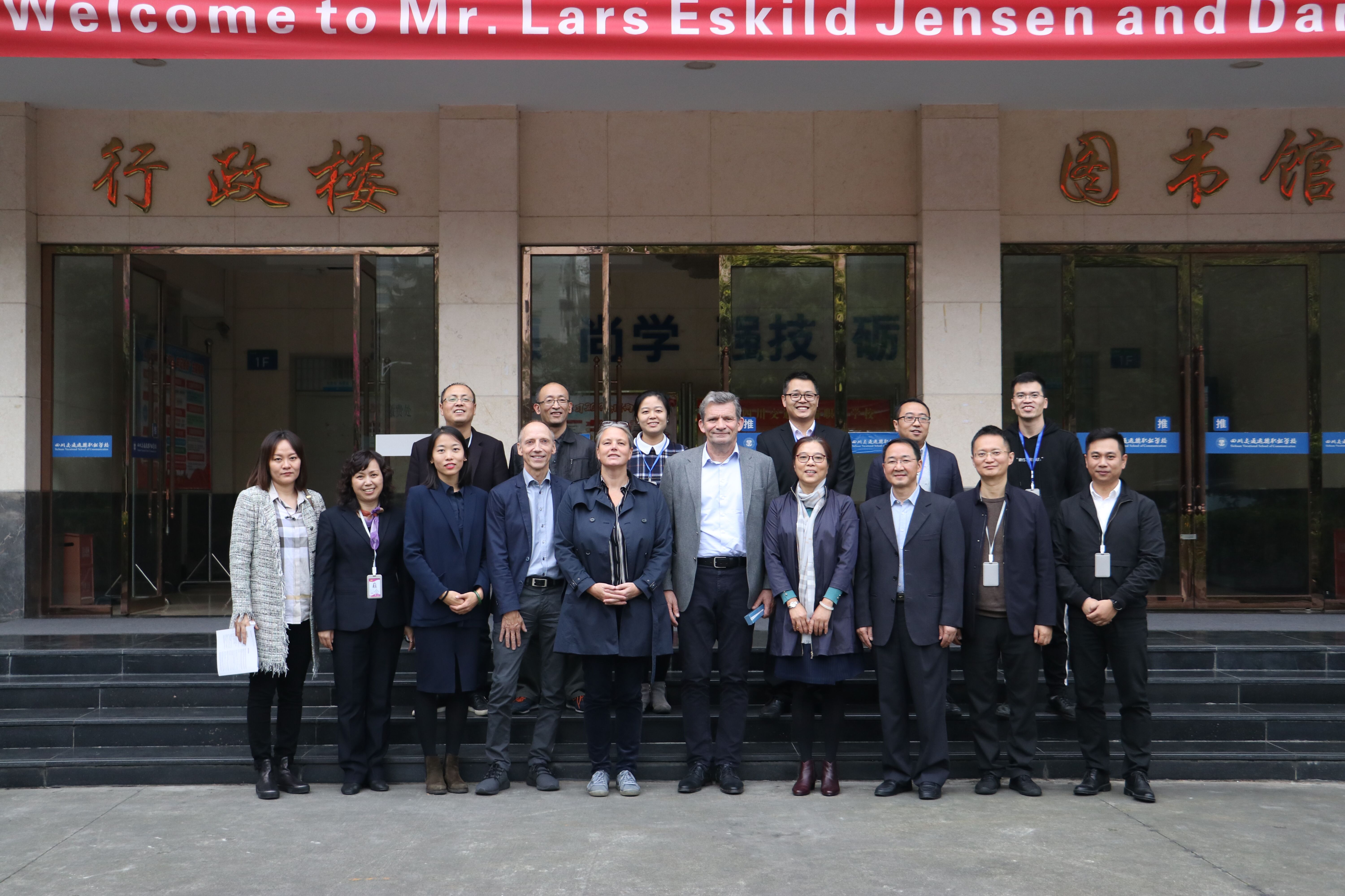 10月30日,丹麦王国驻重庆总领事馆总领事晏森先生及丹麦职业教育联盟(DCAC)领导一行到访学校,双方就进一步推动职业教育合作展开深入探讨。