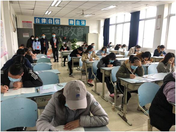 针对本次考试的特殊性,我校特地成立考务工作领导小组,选派责任心强、工作踏实、监考经验丰富的教师担当考务工作,明确考务分工,夯实工作细节,确保考务工作严明有序。在考务人员考前培训会上,温江区人社局相关领导对考务人员进行了现场考务培训,同时在此次考试的准备过程中,我校主动与卫健单位会商,就考生体温检测、考场布置、个人防护、消毒通风、防疫物资准备等具体问题进行沟通交流,确保疫情防控常态化期间考试组织实施安全、平稳、顺利。