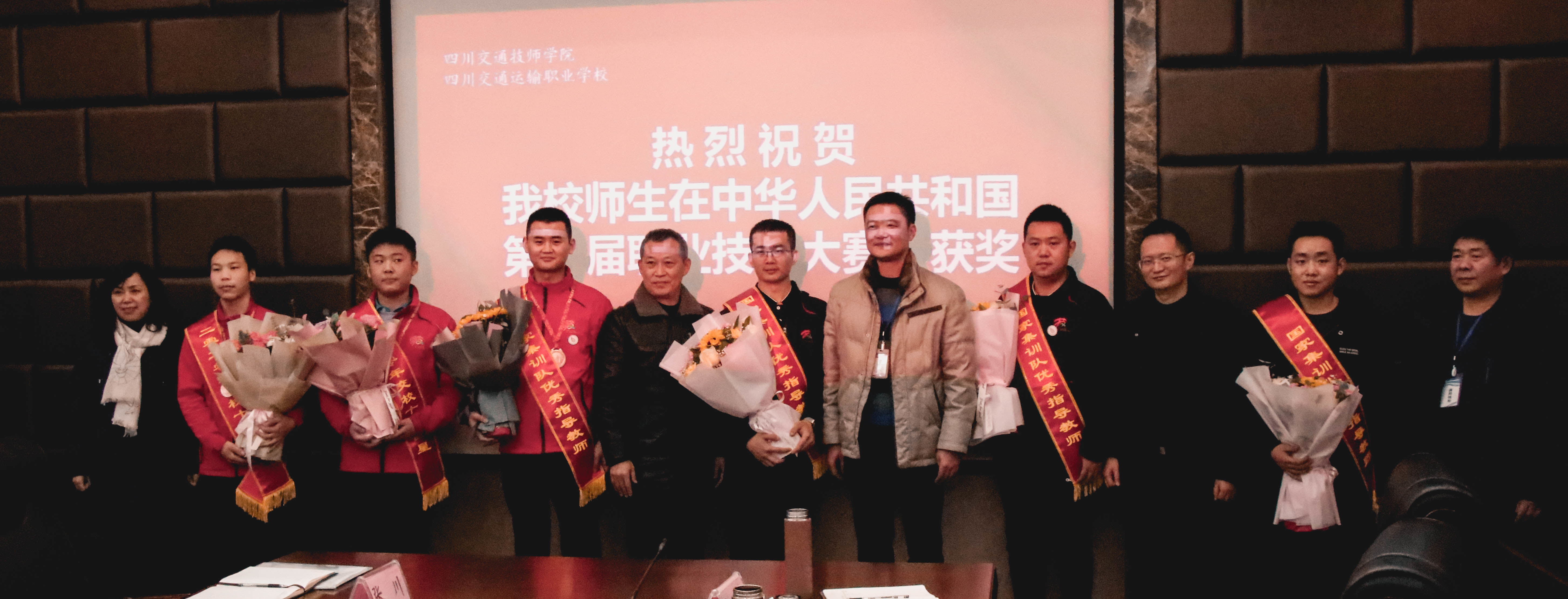 15日,我校为参加中华人民共和国第一届职业技能大赛获奖师生举行庆功表彰会,副校长刘新江主持会议,党委书记曾祥亮致贺词,校领导班子成员、教务科、汽车工程系、建筑工程系有关领导出席会议。