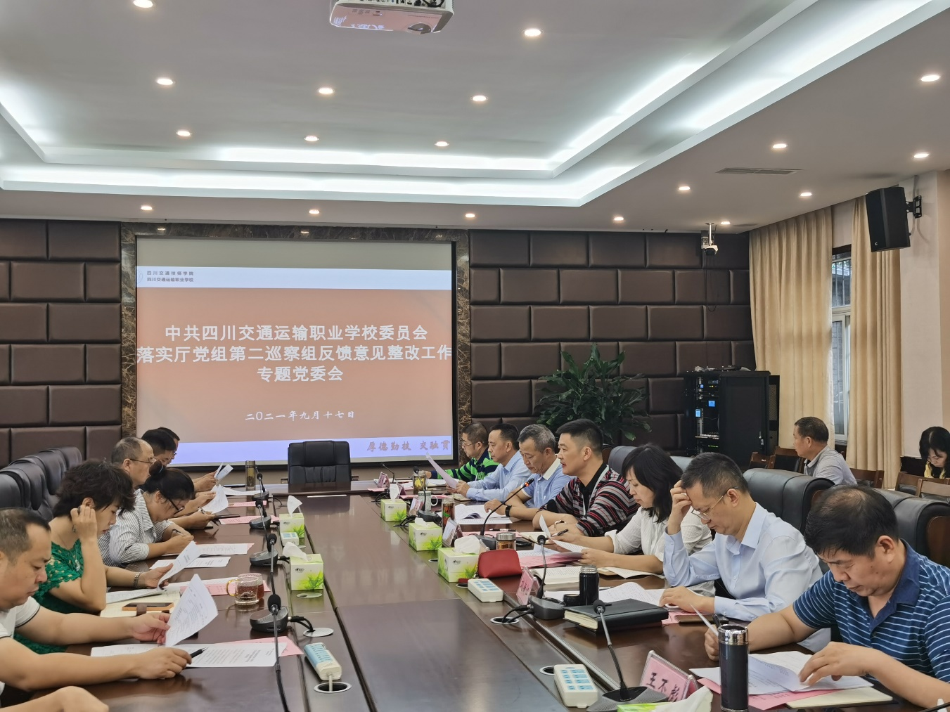 17日上午,校党委召开落实厅党组第二巡察组反馈意见整改工作专题党委会,校领导班子成员、党委委员、各党支部书记,相关部门负责人参会,会议由党委书记、校长曾祥亮同志主持。