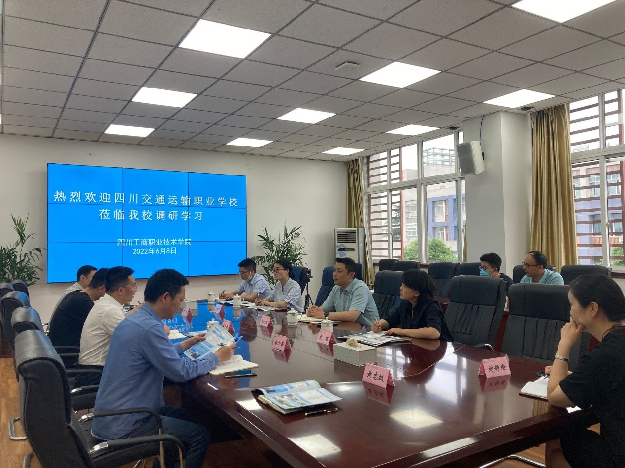 2022年6月8日下午,学校副校长张定国带队,招生就业办公室主任袁丽、交通运输与信息工程系副主任杜艳红及部分骨干教师一行前往四川工商职业技术学院参观调研,并开展座谈交流。