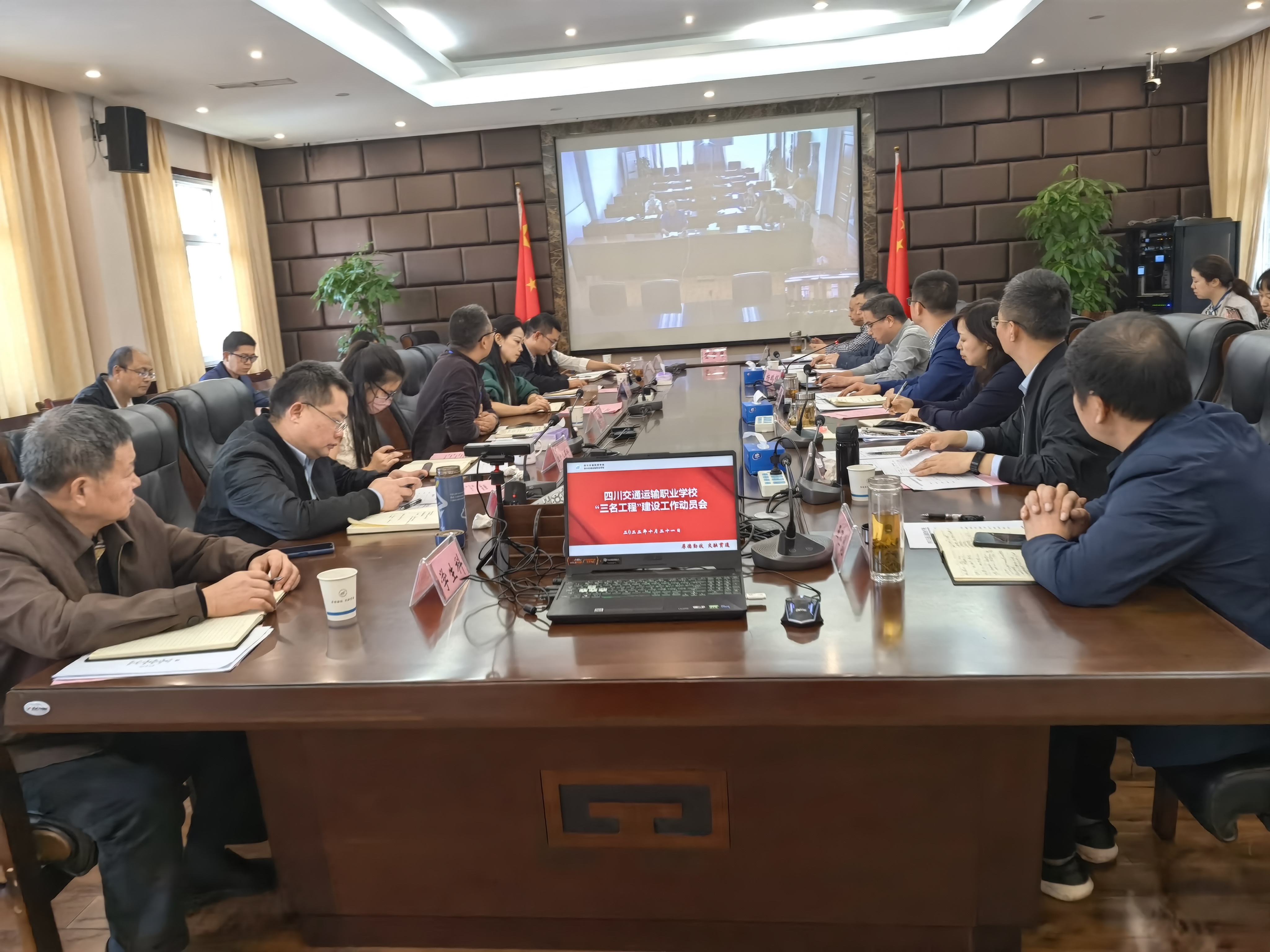 会上,通过全省中等职业教育名校名专业名实训基地《建设任务书》编制专题培训视频会议学习高质量推进“三名工程”建设,工会主席、副校长周萍同志宣读《四川交通运输学校关于推进“三名工程”建设工作的通知》、副校长刘新江同志布署“三名工程”《建设任务书》编制分工作说明、建设任务小组代表签署军令状、副校长张定国同志对“三名工程”建设任务书编制进度作安排。