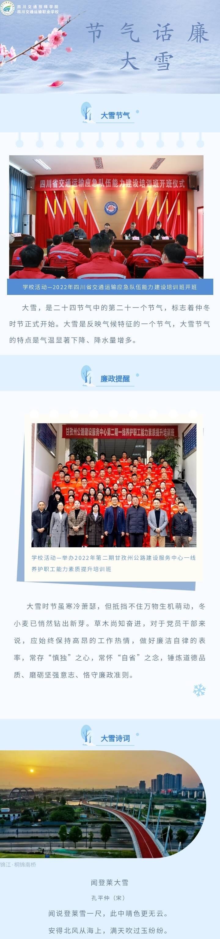 交校清涟之节气话廉大雪篇-四川交通运输职业学校-官方网站