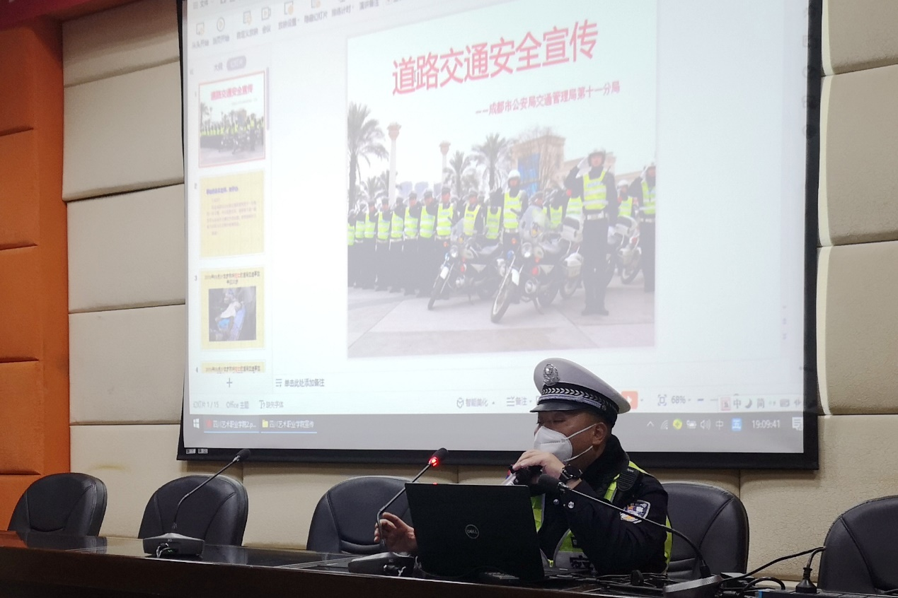 根据“平安校园百日安全行动”计划安排,12月12日,学校邀请成都市交警十一分局勤务中队陈清波警官来校开展交通安全