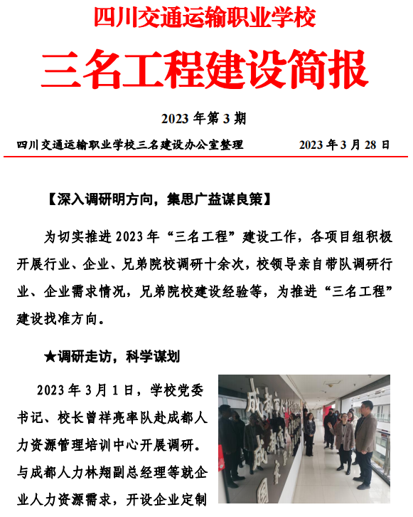 三名工程建设简报第3期-四川交通运输职业学校-官方网站