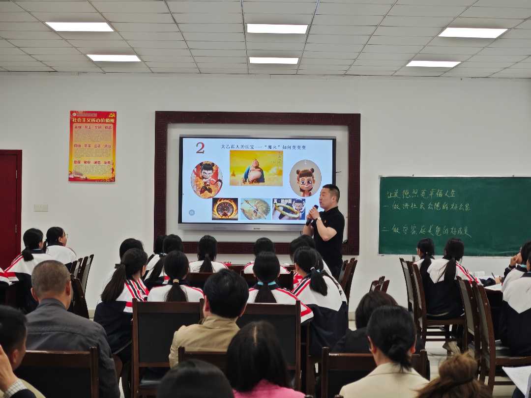 4月25日,在四川省成都市财贸职业高级中学进行课程展示和学科教研活动,学校教师凤龙展示了职业道德与法律课程《让美德照亮幸福人生》部分,教学设计以哪吒为切入口,通过“魔丸改变的法宝”、“哪吒的‘毽子’”两部分内容,让学生了解哪吒融入社会、帮助他人、回归家庭等个人成长历程。从而让学生理解社会公德、家庭美德的基本概念,以及在现实生活中怎样以实际行动践行社会主义核心价值观和守护个人道德行为。