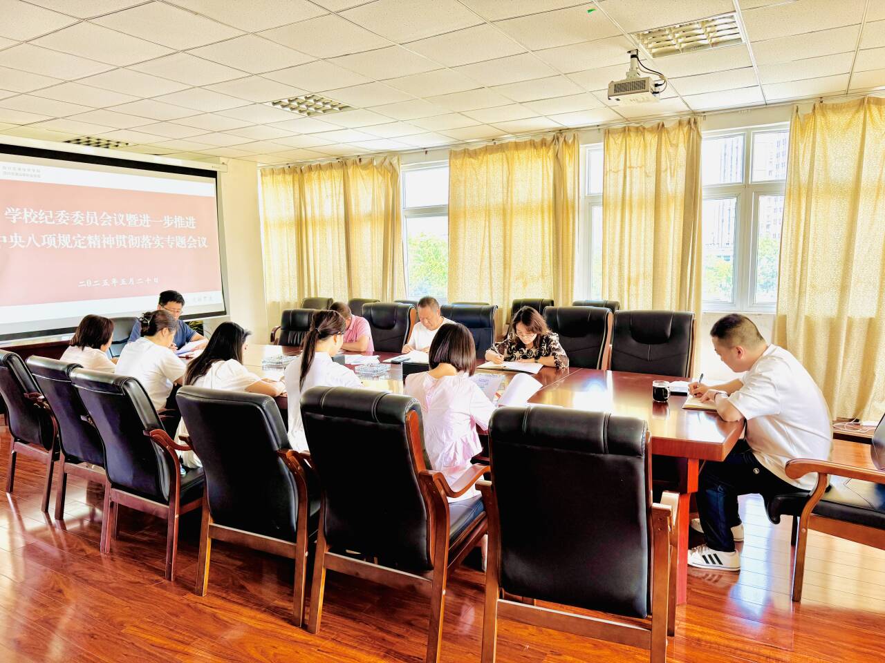 5月20日,学校纪委委员会议暨深入贯彻中央八项规定精神学习教育会议在温江校区四楼会议室召开。学校全体纪委委员出席会议,部分党支部纪检员参加会议,纪委办公室主任巩雪峰主持会议。
