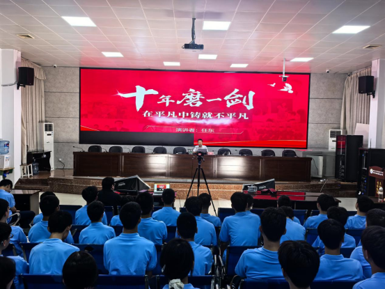 宣讲中,任东结合自身 10年的奋斗经历,从“坚持,热爱”、“实践,专注”、“奋斗,拼搏” 等五个方面分享成长感悟。任东表示“热爱是坚持的底色,专注是突破的关键,只要找准方向,平凡岗位也能发光发热”,鼓励大家 “把工匠精神融入学习生活,脚踏实地追逐梦想”。