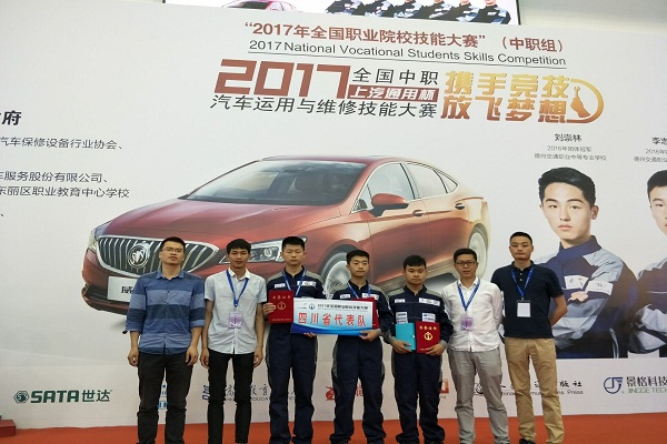 如此丰硕的成绩离不开学校在大赛前期承办的四川省首届中职汽车技能竞赛集训工作。在集训期间,我校通过邀请专家现场指导、组织参赛队员异地拉练等方式,有针对性的对参赛选手的技能和心理进行提高,取得了良好的集训效果。一同参训的我省其他院校代表队也在大赛中斩获颇丰。其中,成都汽车职业技术学校获“汽车机电维修”三等奖2个,“车身钣金”三等奖1个;乐山市第一职业中学获“车身涂装(涂漆)”赛项三等奖1个;合江少岷职业中学获“车身涂装(涂漆)”赛项二等奖1个;成都技师学院获“车身修复(钣金)”赛项三等奖1个;北川七一职业中学获“车身修复(钣金)”赛项三等奖1个。